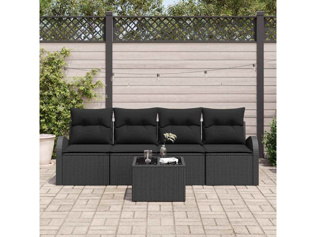 - Odolné materiály Tento pohovkový set je vyrobený z kvalitního poly ratanu, který je odolný vůči povětrnostním vlivům, takže zůstane v pohodě za různých podmínek – ideální pro celoroční užití na terase nebo zahradě.