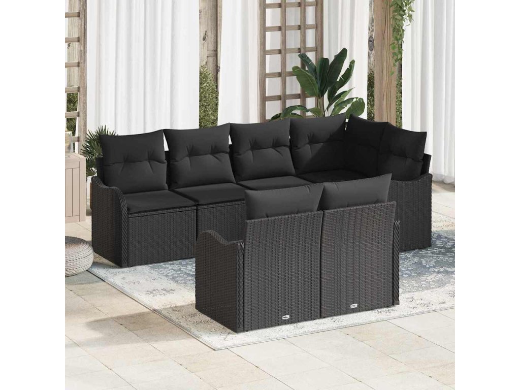 Tento zahradní pohovkový set spojuje moderní vzhled s praktickými funkcemi, navržený tak, aby vylepšil tvůj venkovní prostor. Pohodlně se sem vejde až 7 lidí, takže je super pro rodinné akce nebo laxní chvíle s kamarády na zahradě nebo terase. S elegantním pleteným designem dodává tvému venkovnímu prostoru šmrnc. Pevné materiály jsou vyrobeny tak, aby vydržely, a poskytují pohodlné sezení, jistě tě přimějí k relaxaci a užívání si přírody.