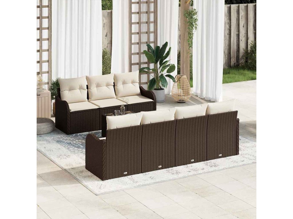 Moderní zahradní sofa set nabízí stylové a funkční sezení pro každý venkovní prostor díky čistým liniím a minimalistickému designu. Tento obdélníkový sofa set je ideální pro moderní zahradní prostory, poskytuje pohodlné místo na relaxaci. Je vyroben z poly ratanu a má pevný práškově lakovaný ocelový rám, což zajišťuje trvanlivost a dlouhou životnost. Jeho elegantní vzhled a flexibilní struktura se budou líbit lidem, kteří hledají kombinaci estetiky a funkčnosti v zahradním nábytku.