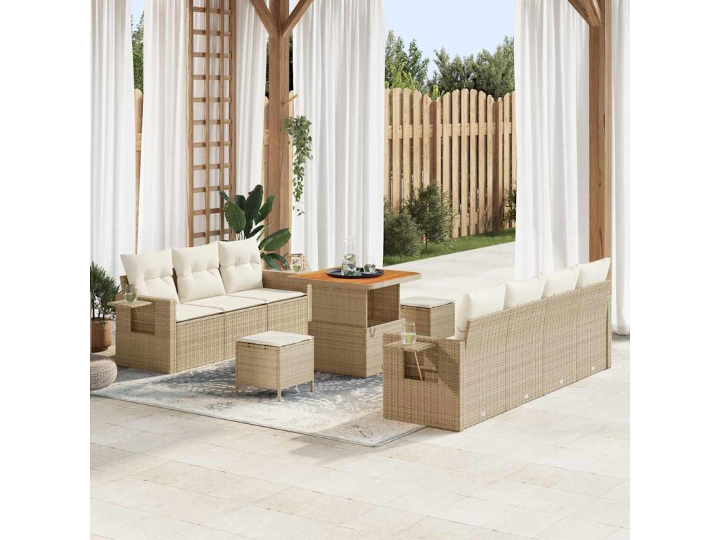 Sada zahradních pohovek s polštářem 10 pcs béžová a krémová 3363656