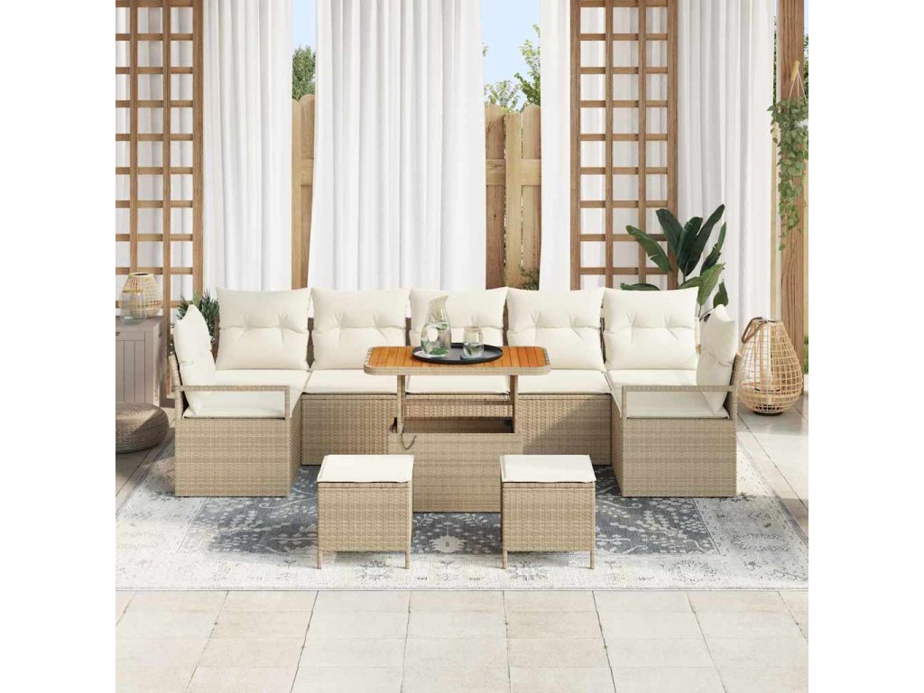 Sada zahradních pohovek s polštářem 10 pcs Béžová a krémová 3364461