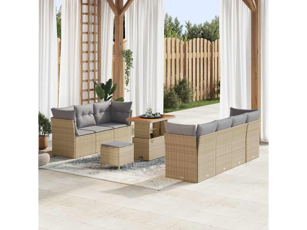 Sada zahradních pohovek s polštářem 10 pcs béžová a světle šedá 3363402