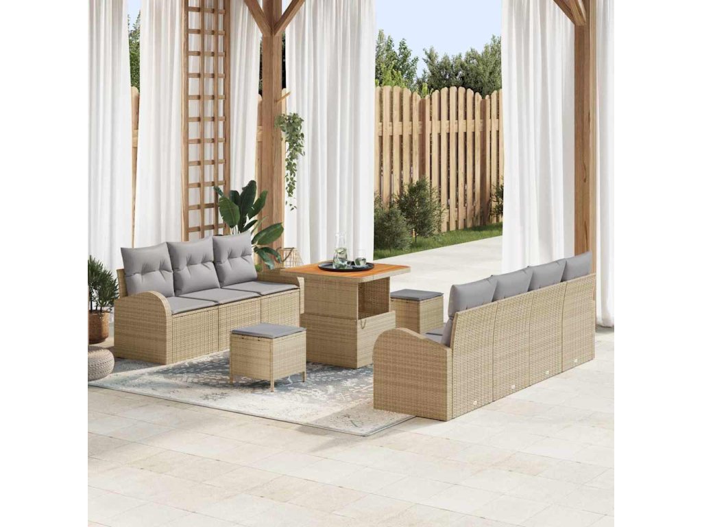 Sada zahradních pohovek s polštářem 10 pcs Béžová a Světle šedá 3364307