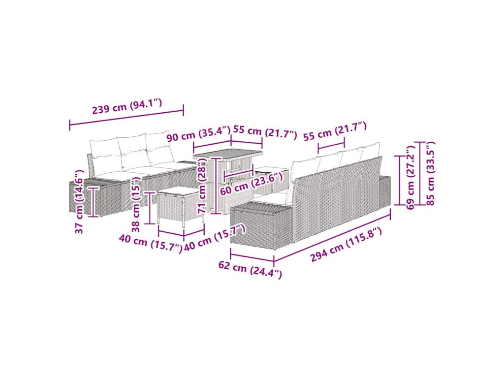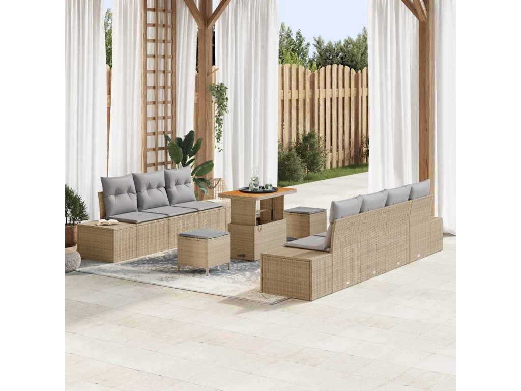 Sada zahradních pohovek s polštářem 10 pcs Béžová a Světle šedá 3364702