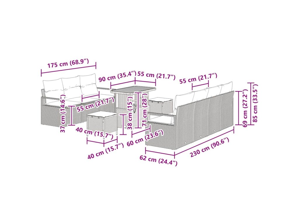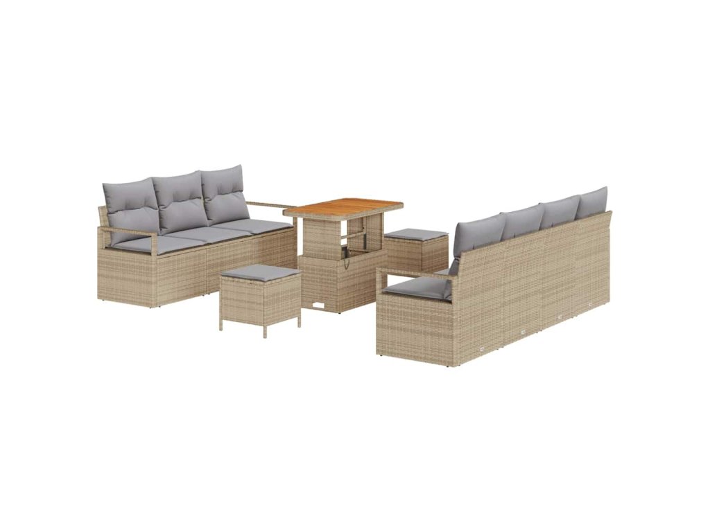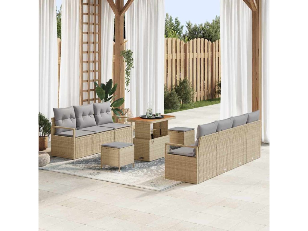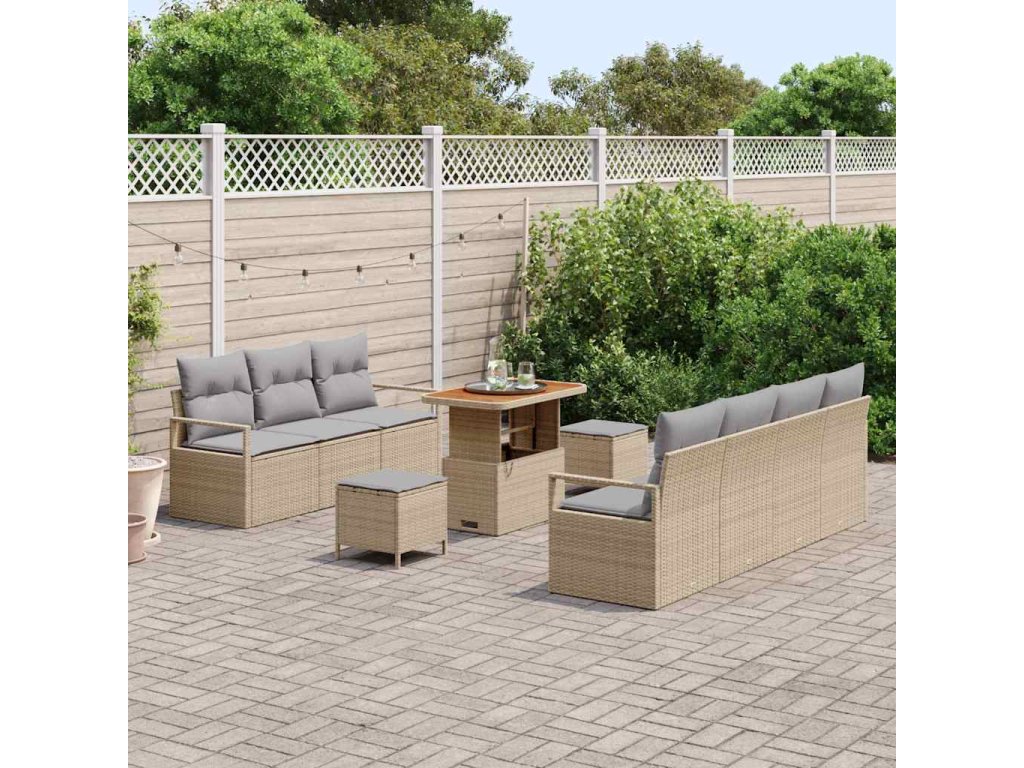 Sada zahradních pohovek s polštářem 10 pcs Béžová Poly ratan 3362492