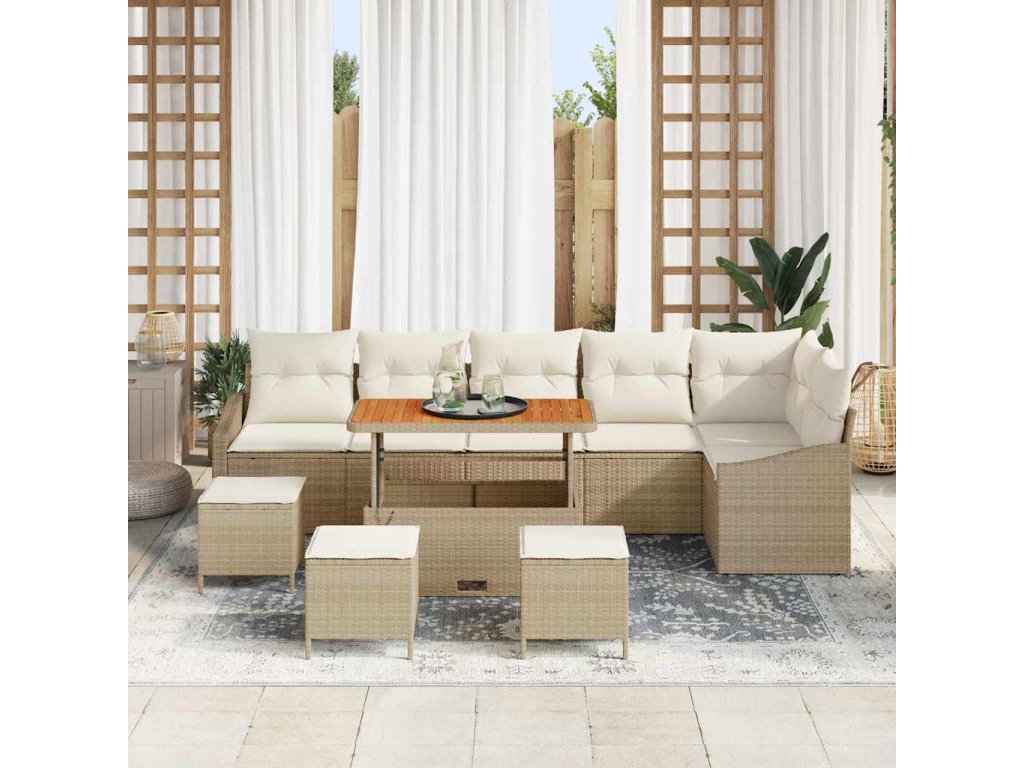 Sada zahradních pohovek s polštářem 10 pcs Béžová Poly ratan 3362681