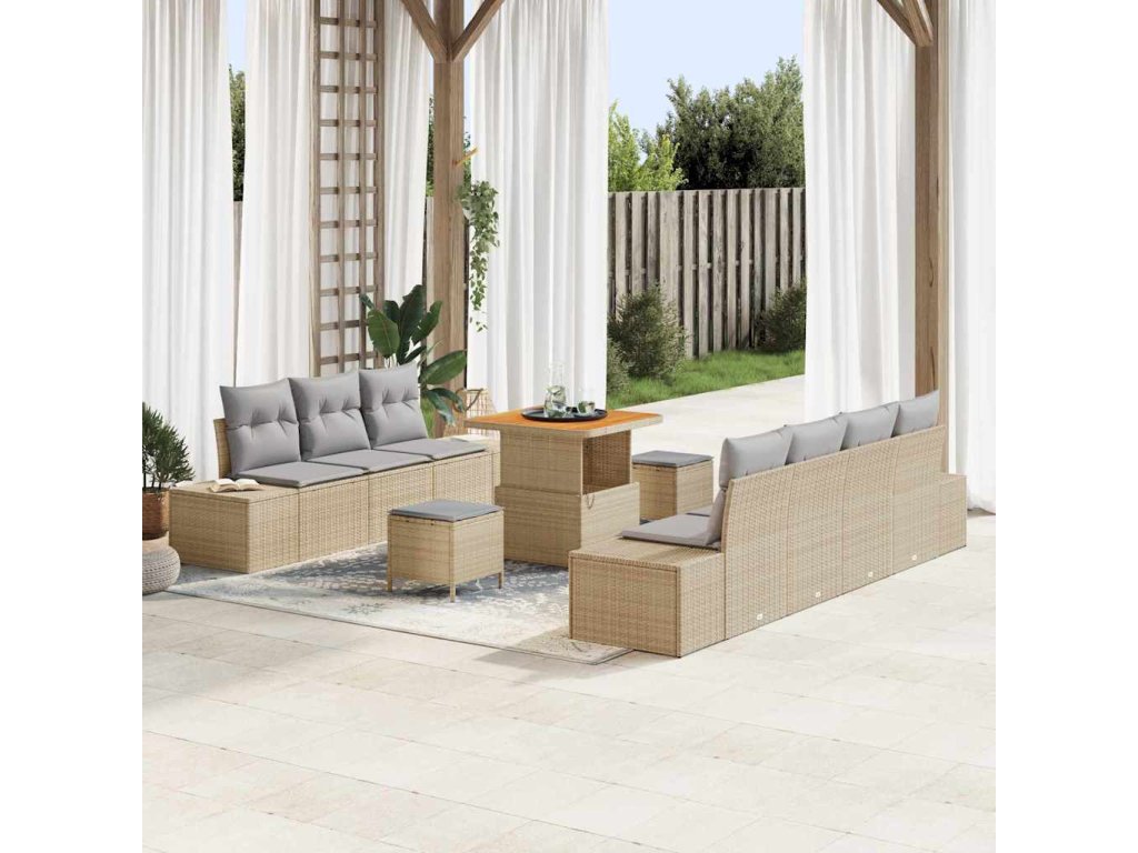 Sada zahradních pohovek s polštářem 10 pcs Béžová Poly ratan 3364697