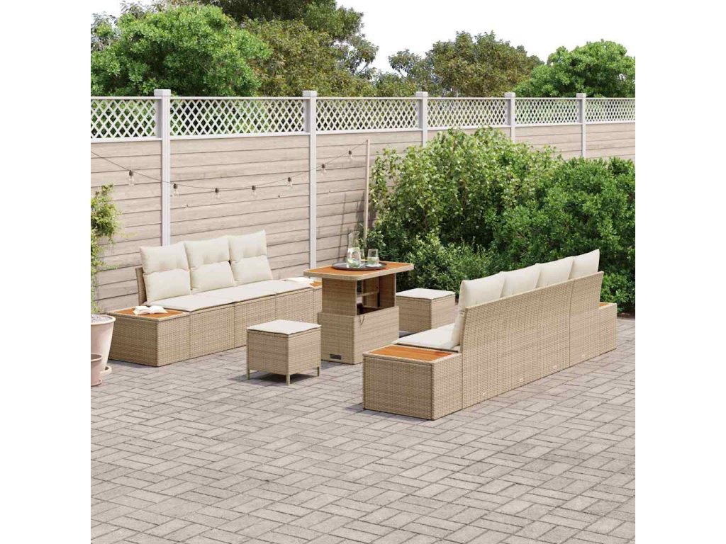 Sada zahradních pohovek s polštářem 10 pcs Béžová Poly ratan 3364831