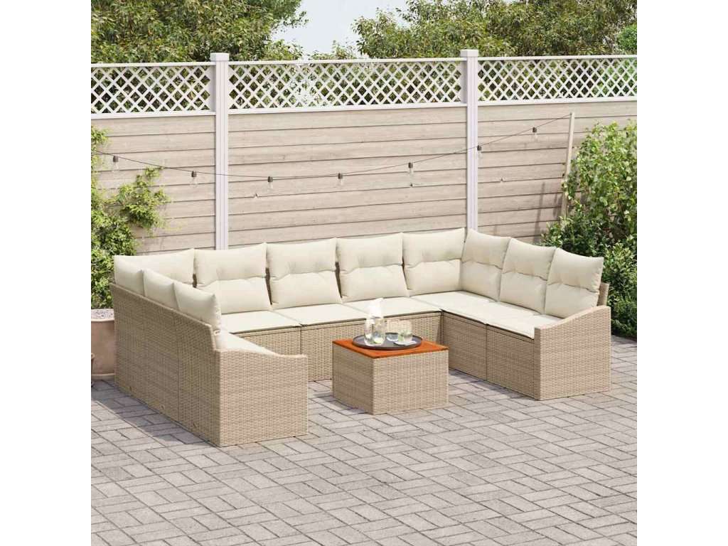 Sada zahradních pohovek s polštářem 10 pcs Béžová polyratan 3347876