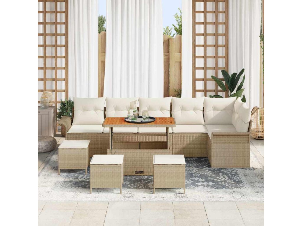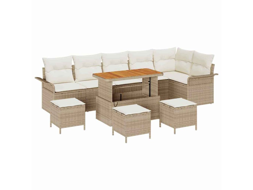 Sada zahradních pohovek s polštářem 10 pcs Béžová polyratan 3362161
