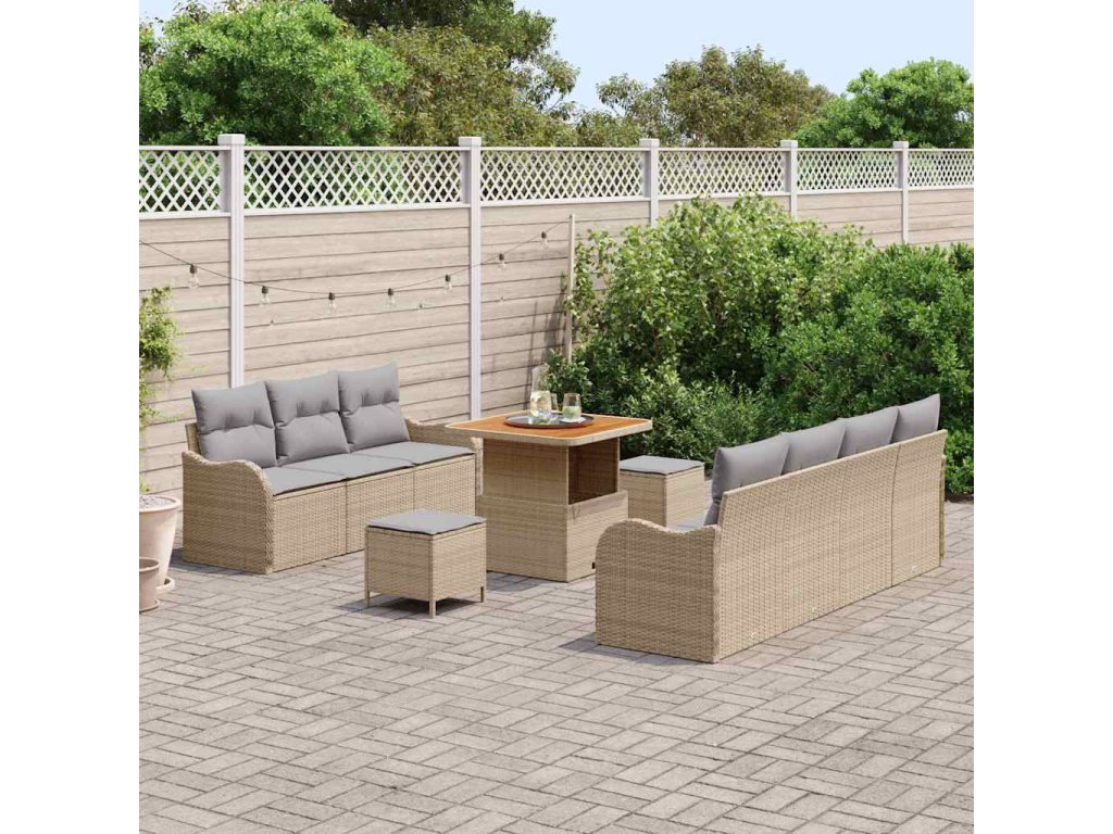 Sada zahradních pohovek s polštářem 10 pcs Béžová polyratan 3362227