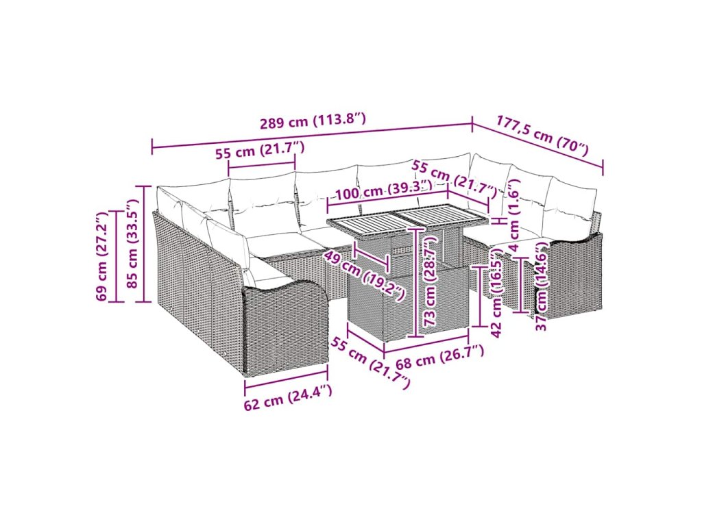 Tento obdélníkový venkovní jídelní set je ideální pro vychutnání jídla venku, na malebném balkonu nebo v zahradě. Je vyrobený z kvalitního ručně tkaného ratanu, takže vypadá moderně a perfektně zapadne do jakéhokoliv venkovního prostoru. Vytvoří příjemnou atmosféru na velkých akcích nebo klidných večeřích.