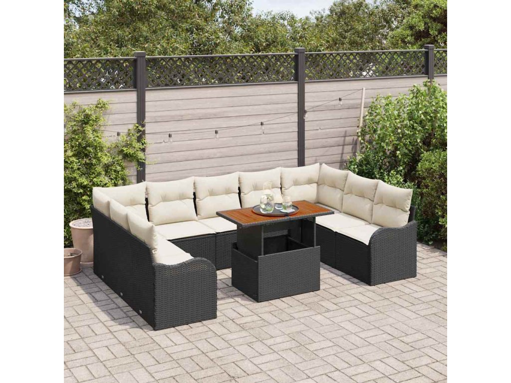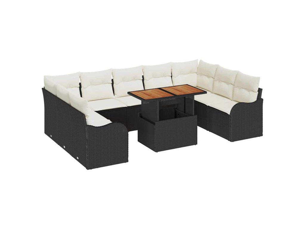 Sada zahradních pohovek s polštářem 10 pcs Černá a krémová 3349501