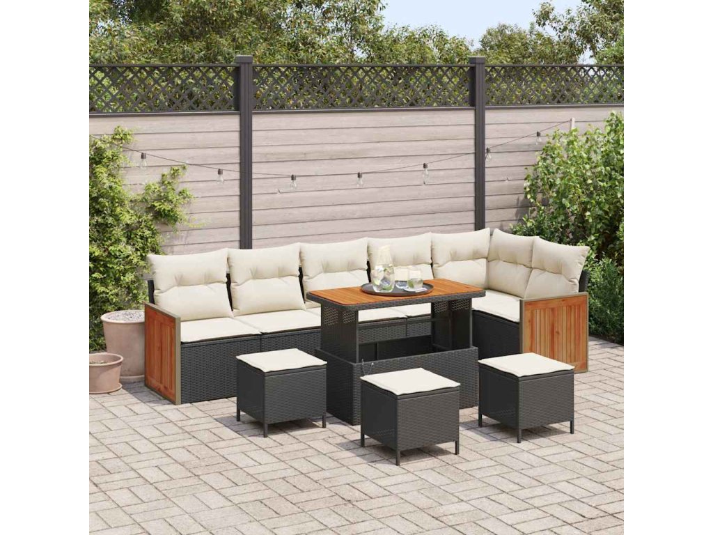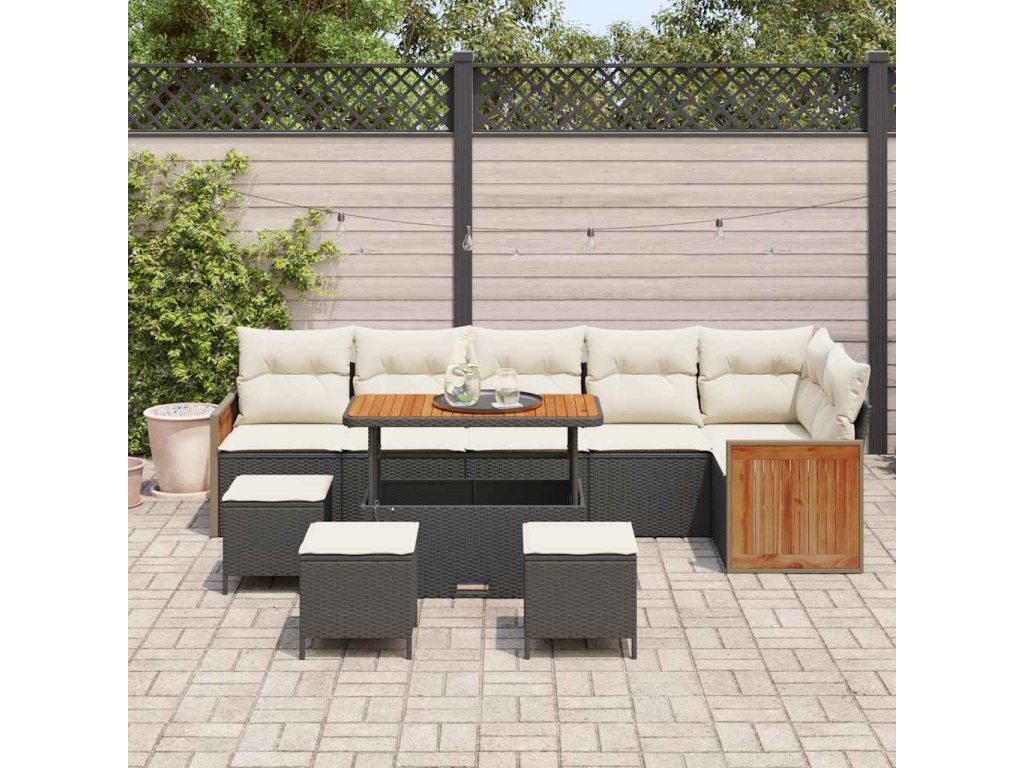 Sada zahradních pohovek s polštářem 10 pcs Černá a krémová 3363330