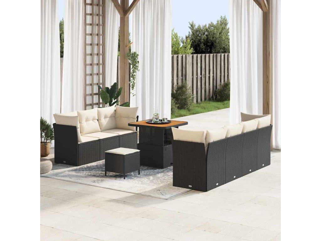 Sada zahradních pohovek s polštářem 10 pcs Černá a krémová 3363395