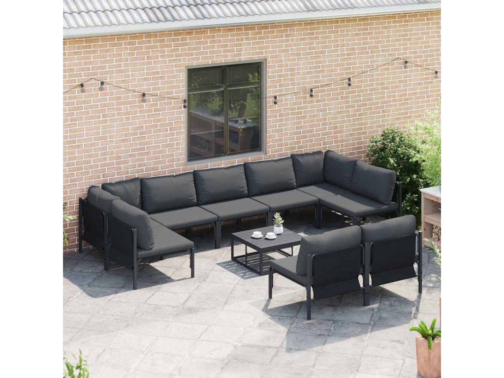 Sada zahradních pohovek s polštářem 10 pcs Černá Ocel 3379011