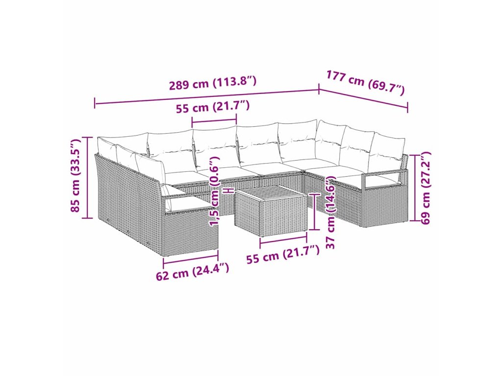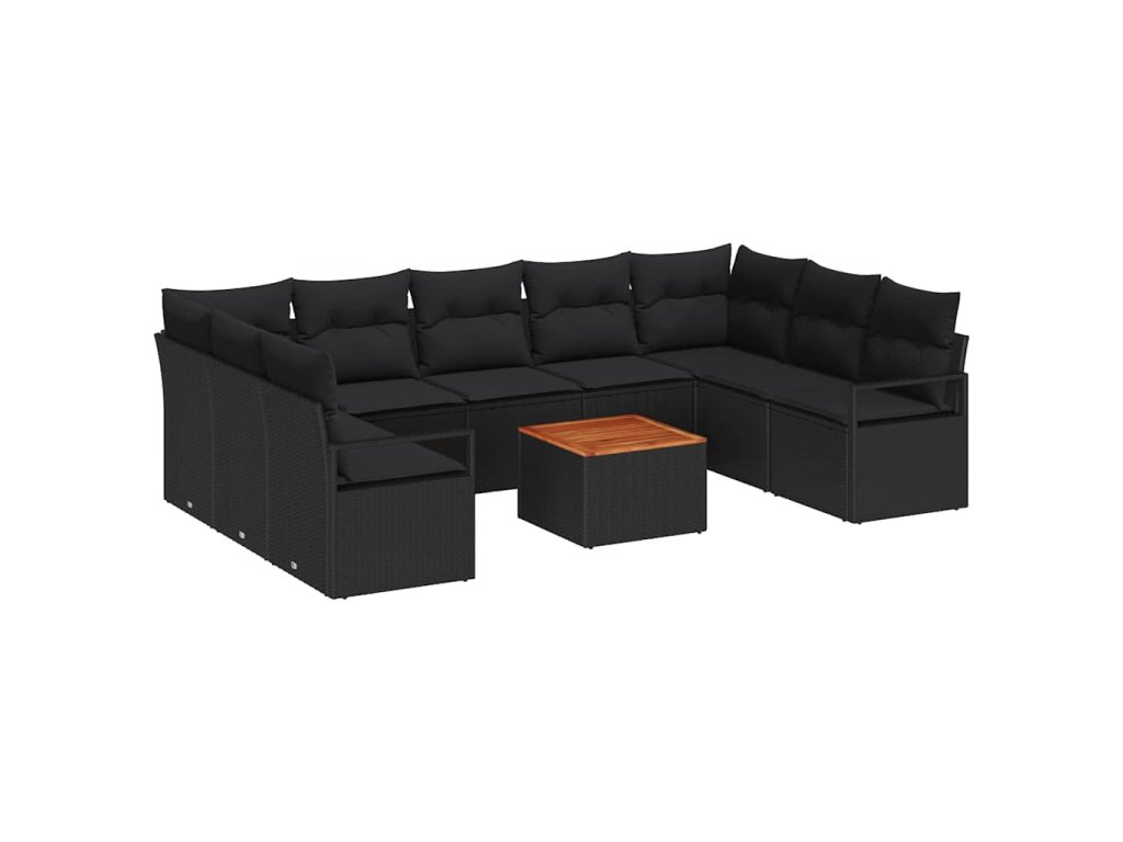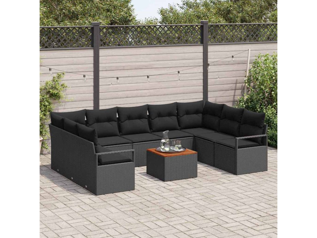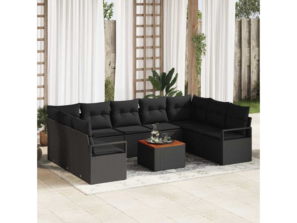 Sada zahradních pohovek s polštářem 10 pcs Černá Poly ratan 3347751