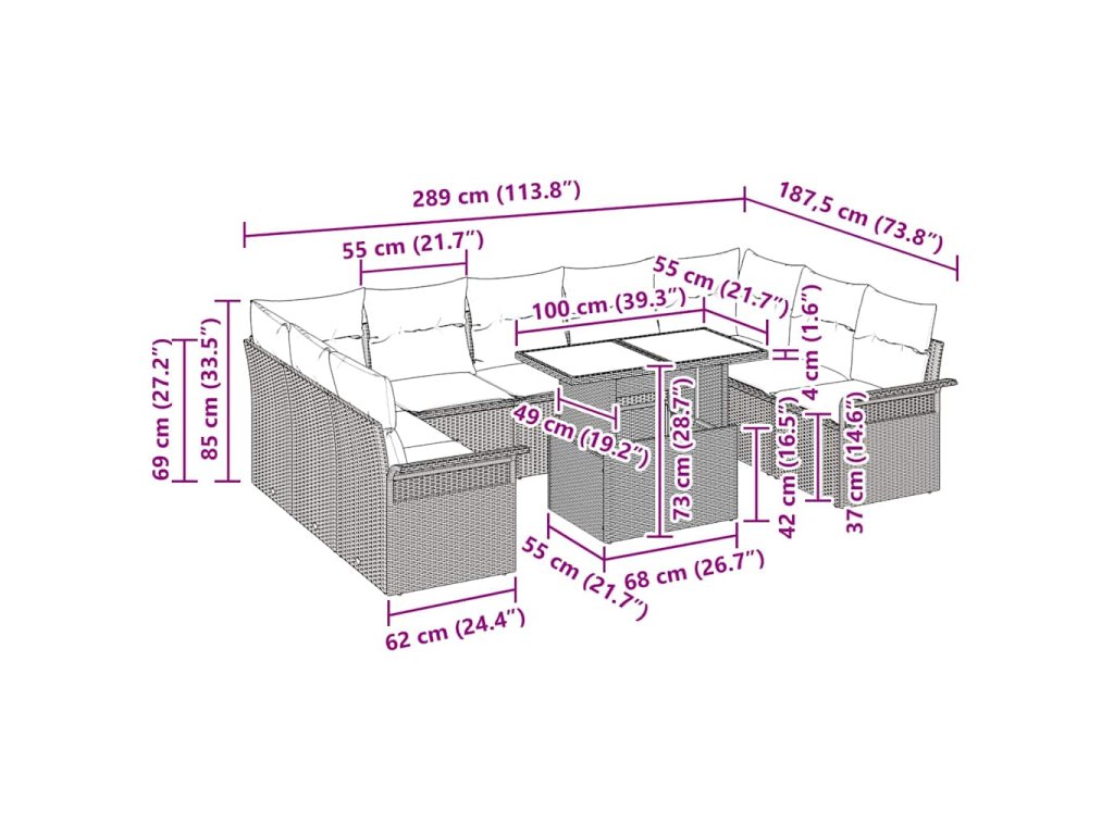 Sada zahradních pohovek s polštářem 10 pcs Černá Poly ratan 3348349