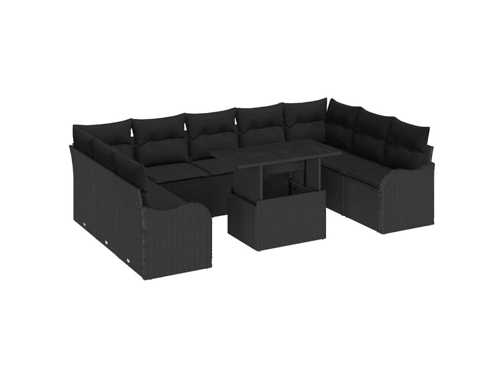 Sada zahradních pohovek s polštářem 10 pcs Černá Poly Ratan 3357266