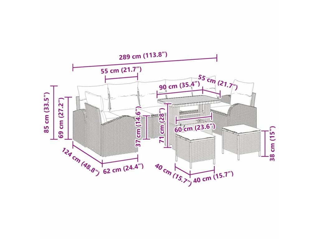 - Materiály: Poly ratan a polyester Sada je vyrobena z poly ratanu a polyesteru, což je skvělá kombinace pro pohodlí a odolnost. Tyto materiály vydrží i nepřízeň počasí a zajistí dlouhou životnost venku.