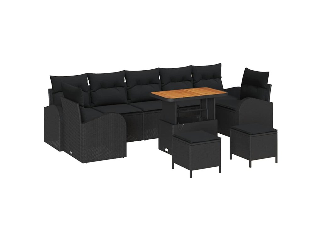 Sada zahradních pohovek s polštářem 10 pcs Černá Poly ratan 3362379