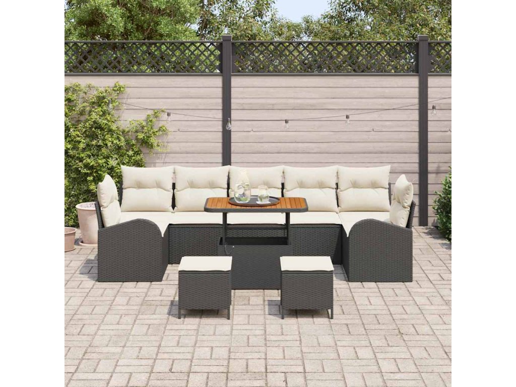 Sada zahradních pohovek s polštářem 10 pcs Černá Poly ratan 3362380