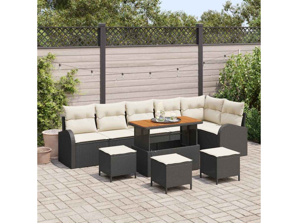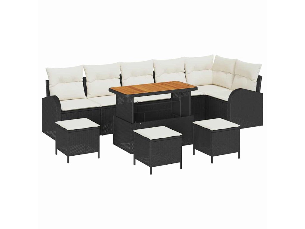 Sada zahradních pohovek s polštářem 10 pcs Černá Poly ratan 3362420