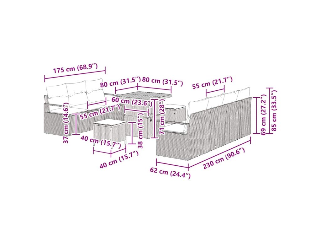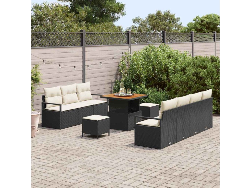 Sada zahradních pohovek s polštářem 10 pcs Černá Poly ratan 3362485