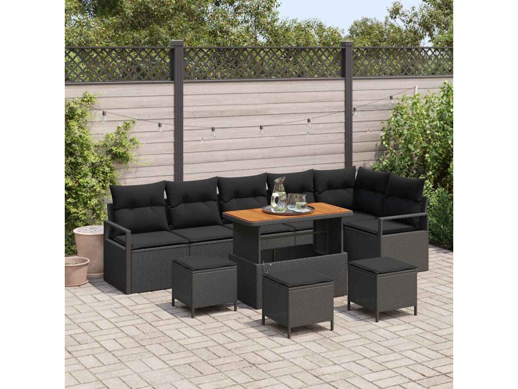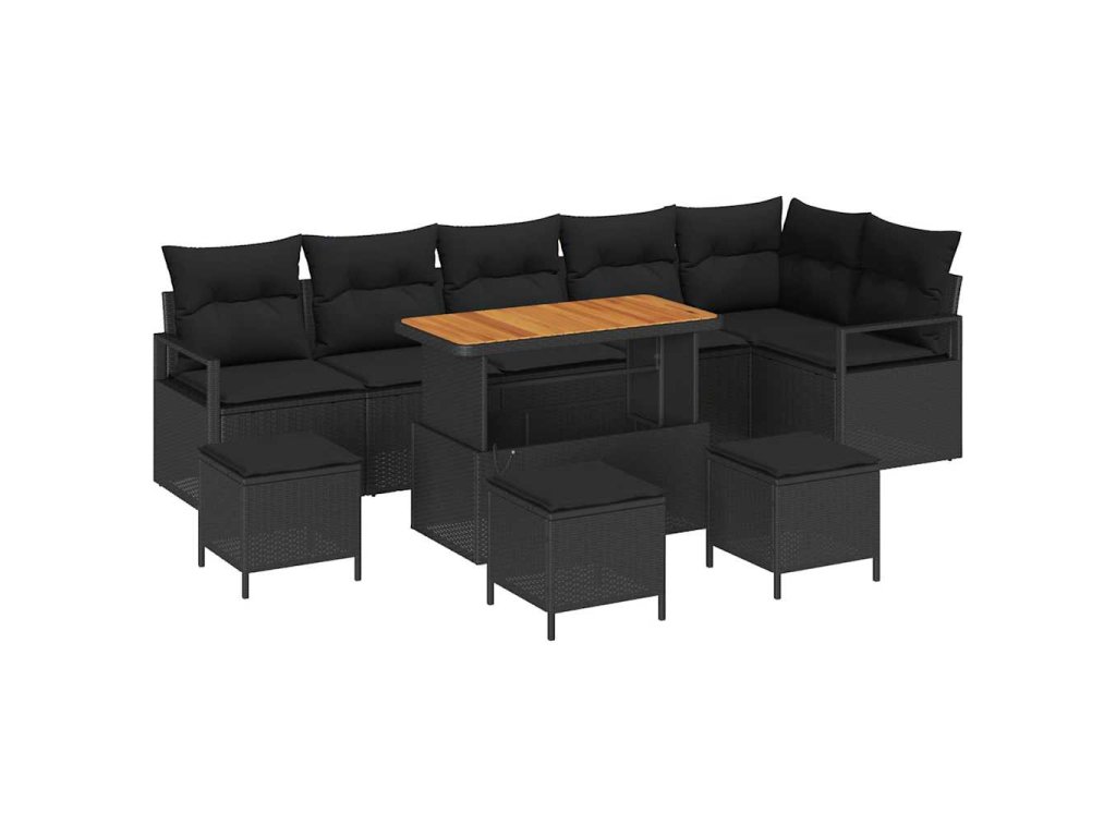 Sada zahradních pohovek s polštářem 10 pcs Černá Poly ratan 3362549