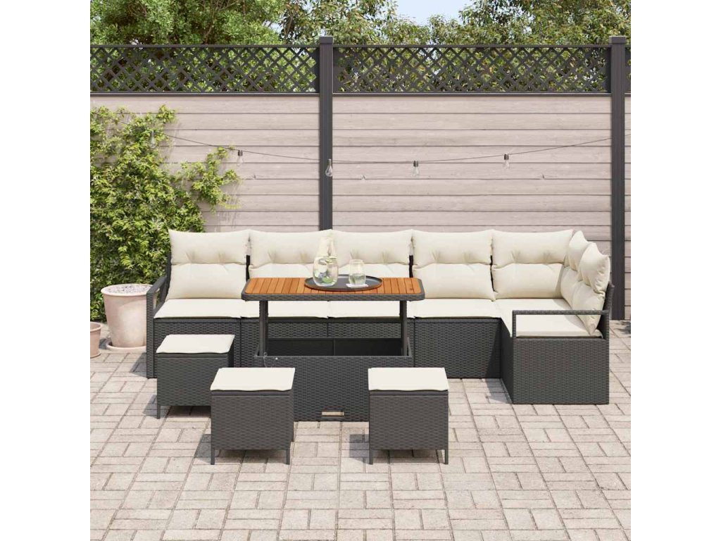 Sada zahradních pohovek s polštářem 10 pcs Černá Poly ratan 3362550