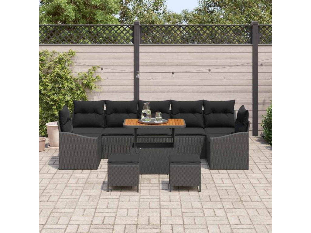 Sada zahradních pohovek s polštářem 10 pcs Černá Poly ratan 3362639