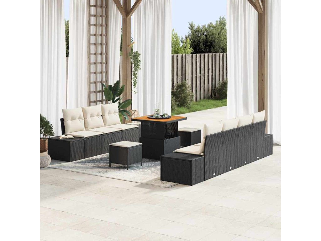 Sada zahradních pohovek s polštářem 10 pcs Černá Poly ratan 3364695