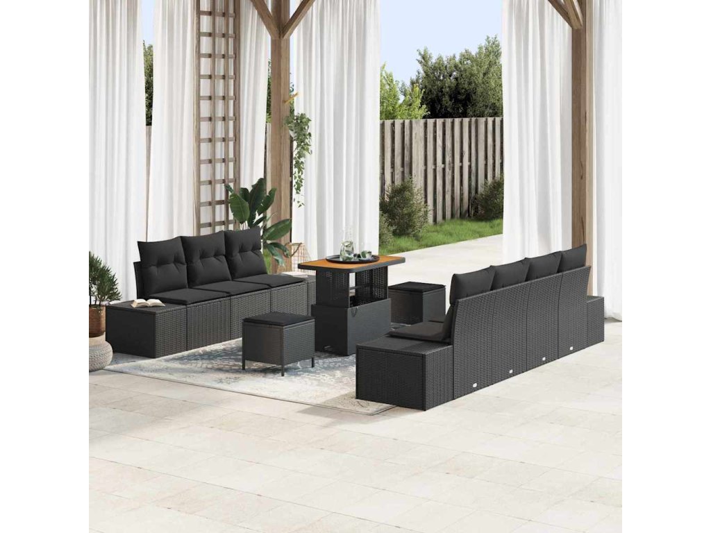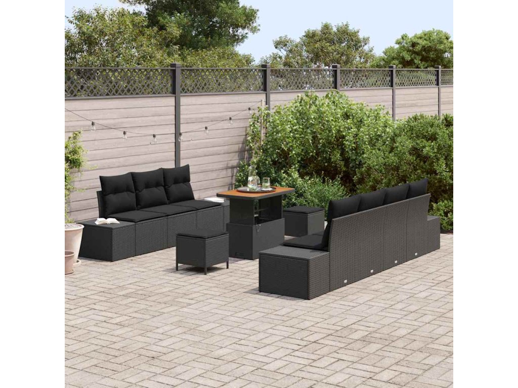 Sada zahradních pohovek s polštářem 10 pcs Černá Poly ratan 3364699