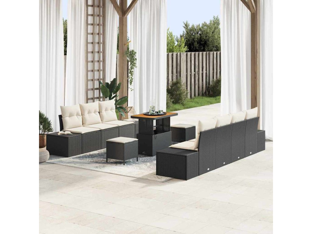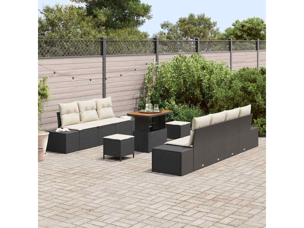 Sada zahradních pohovek s polštářem 10 pcs Černá Poly ratan 3364700