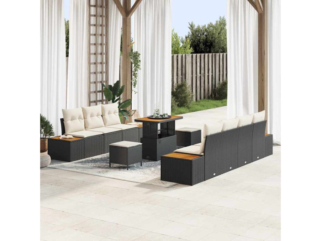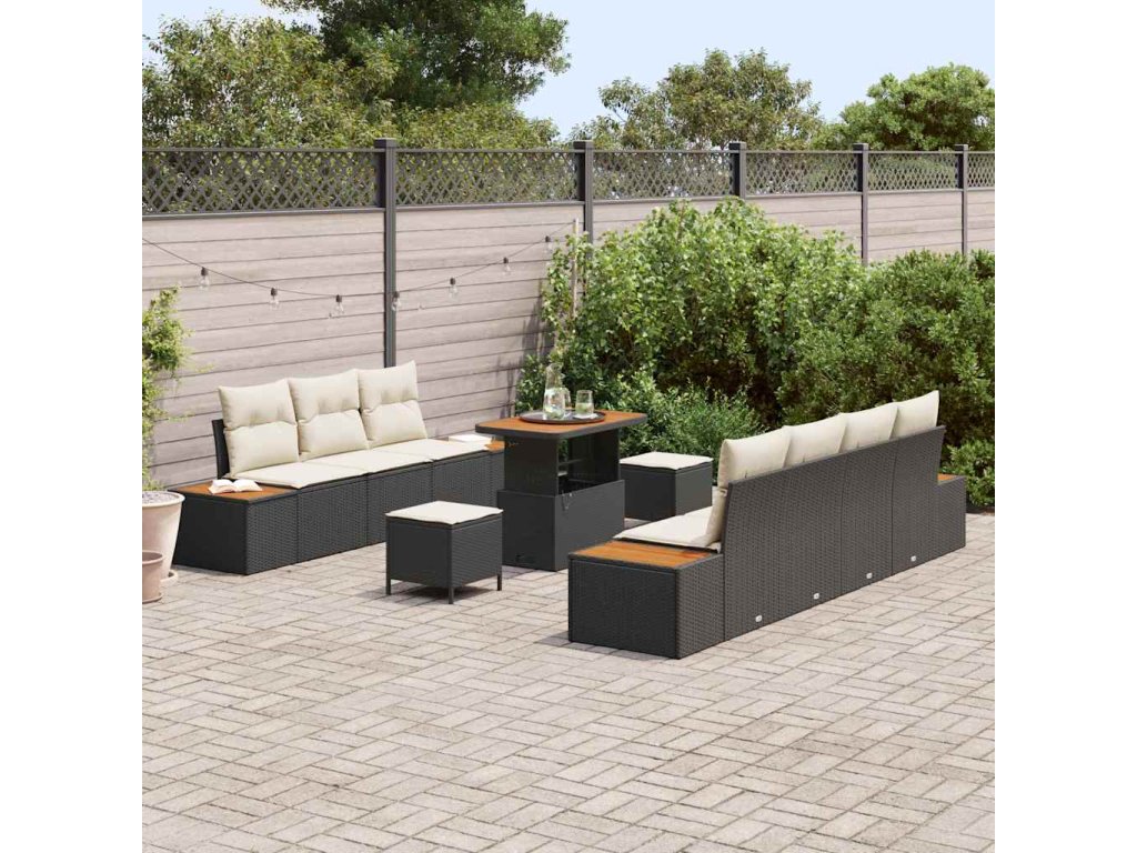 Sada zahradních pohovek s polštářem 10 pcs Černá Poly ratan 3364830