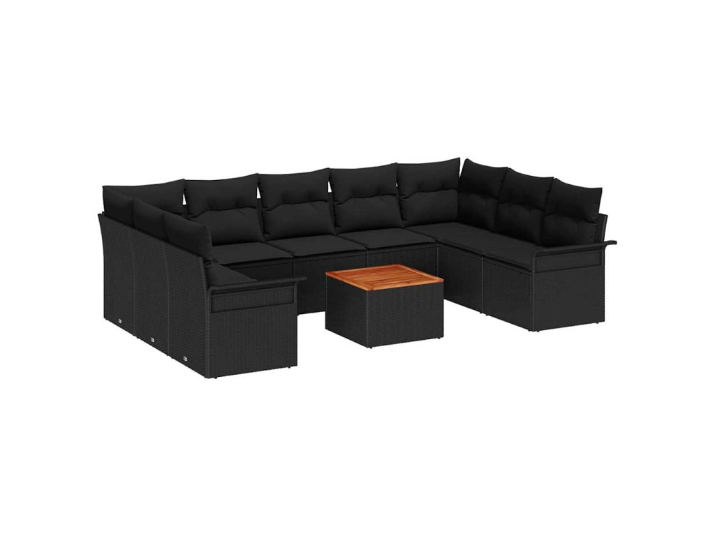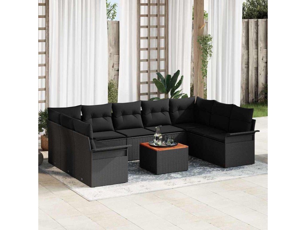 Sada zahradních pohovek s polštářem 10 pcs Černá polyratan 3347373