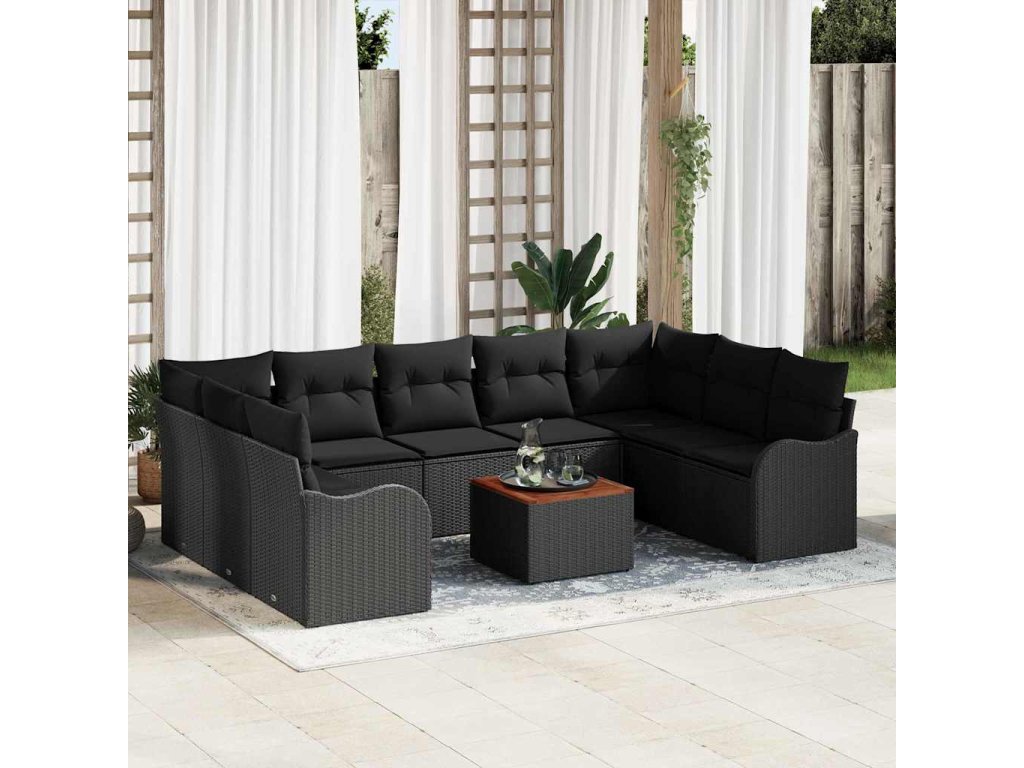 Sada zahradních pohovek s polštářem 10 pcs Černá polyratan 3347499