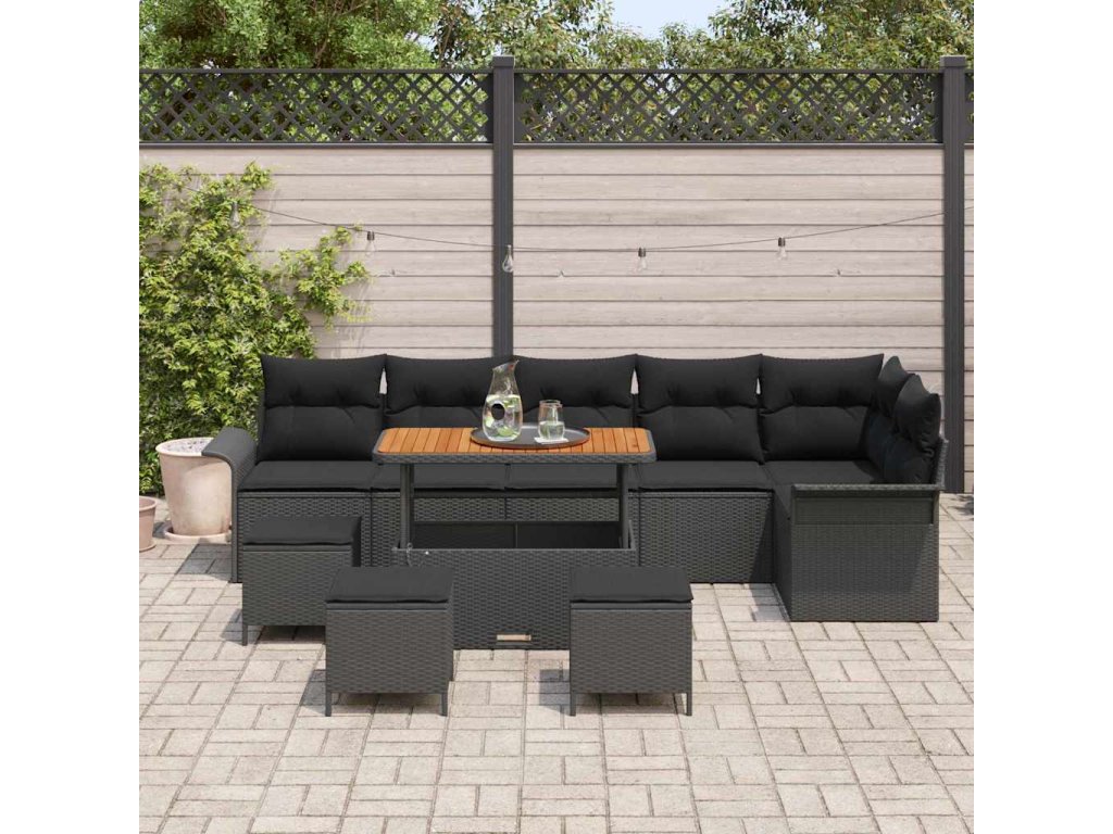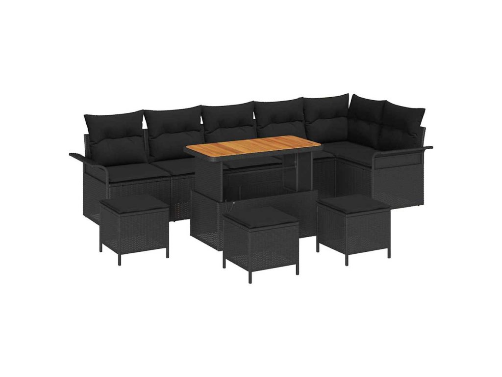 Sada zahradních pohovek s polštářem 10 pcs Černá polyratan 3362159