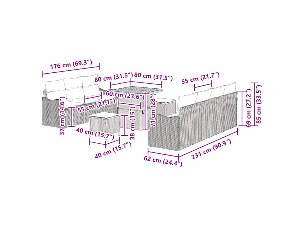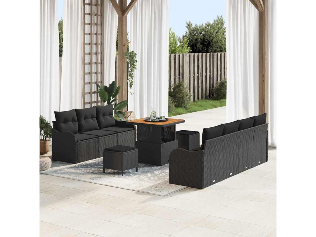 Sada zahradních pohovek s polštářem 10 pcs Černá polyratan 3362224