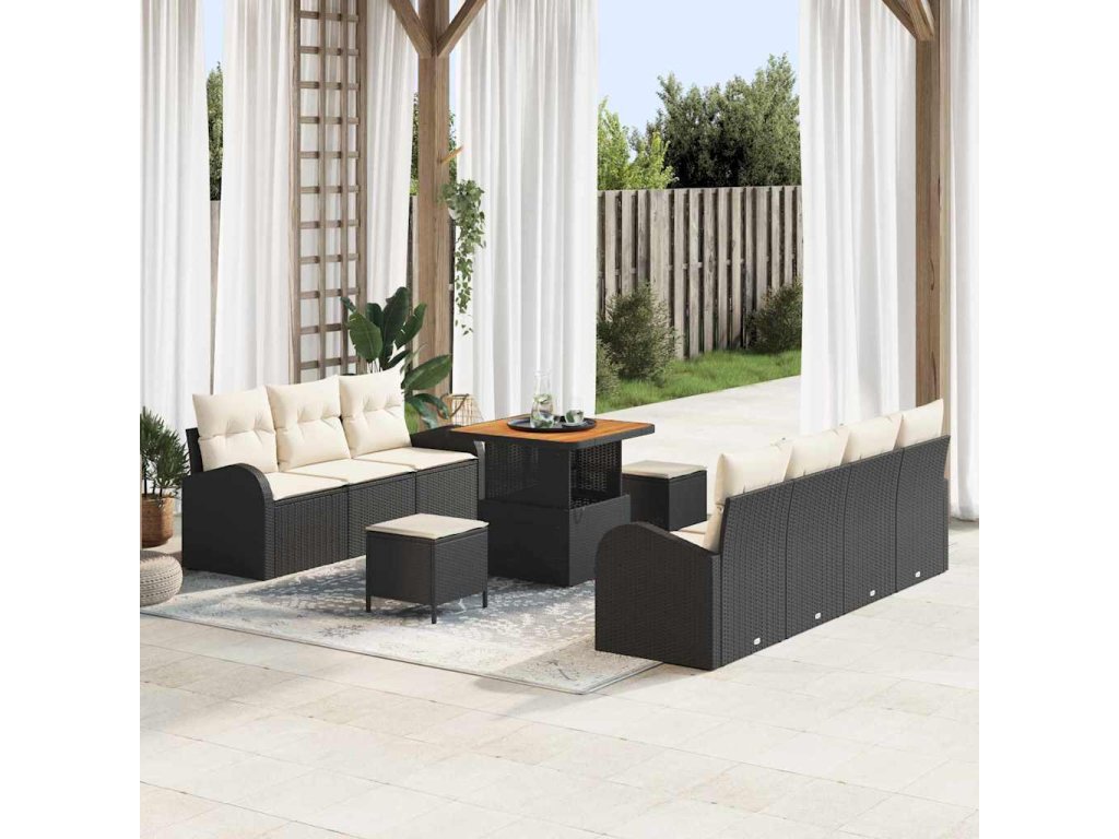 Sada zahradních pohovek s polštářem 10 pcs Černá polyratan 3362355