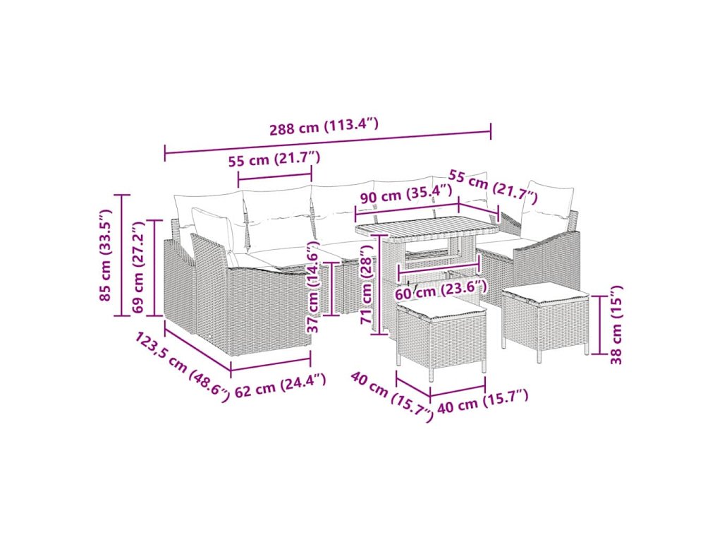 Sada zahradních pohovek s polštářem 10 pcs Černá polyratan 3362640