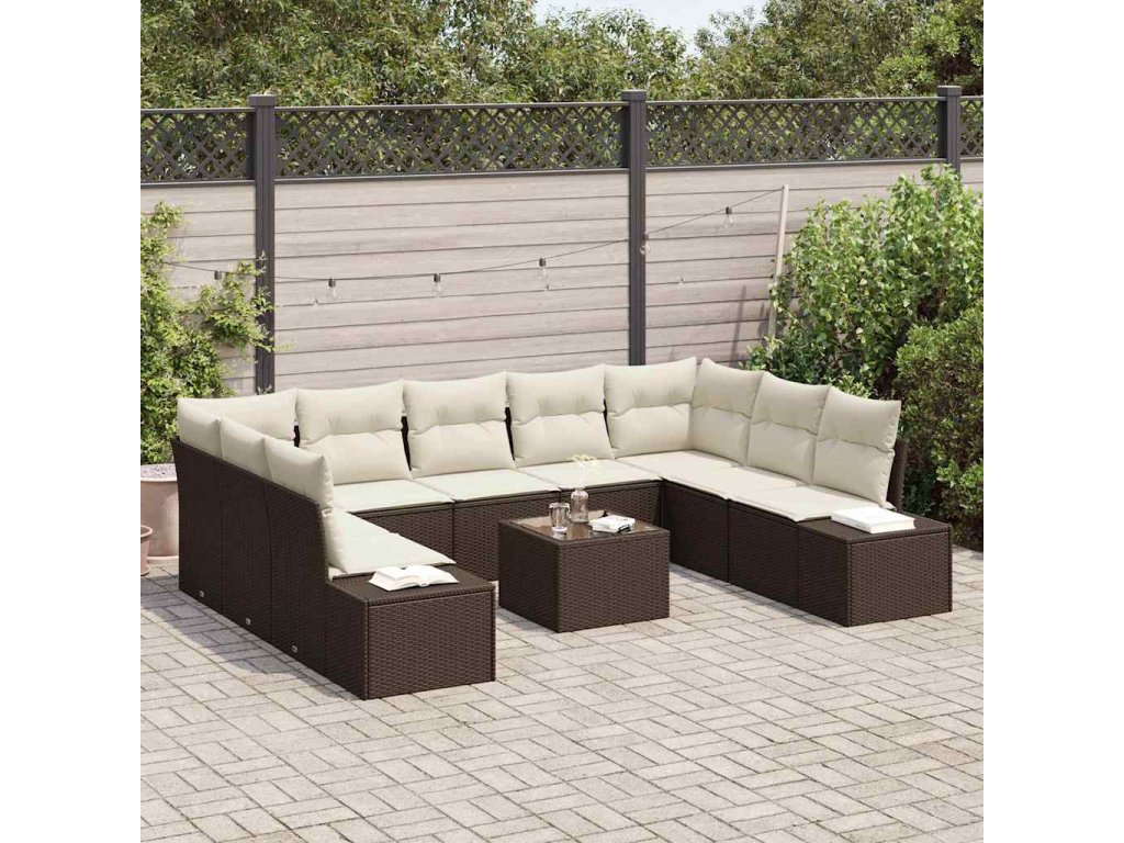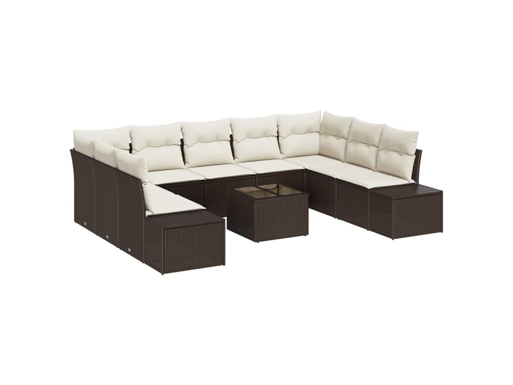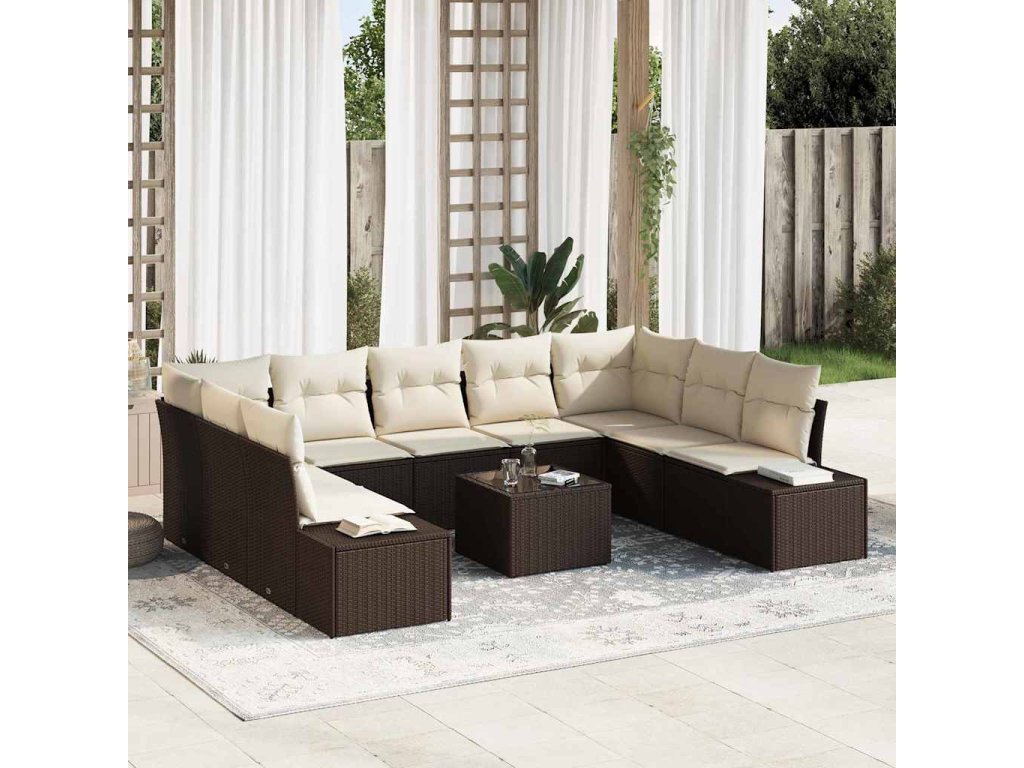 Sada zahradních pohovek s polštářem 10 pcs Hnědá polyratan 3347228