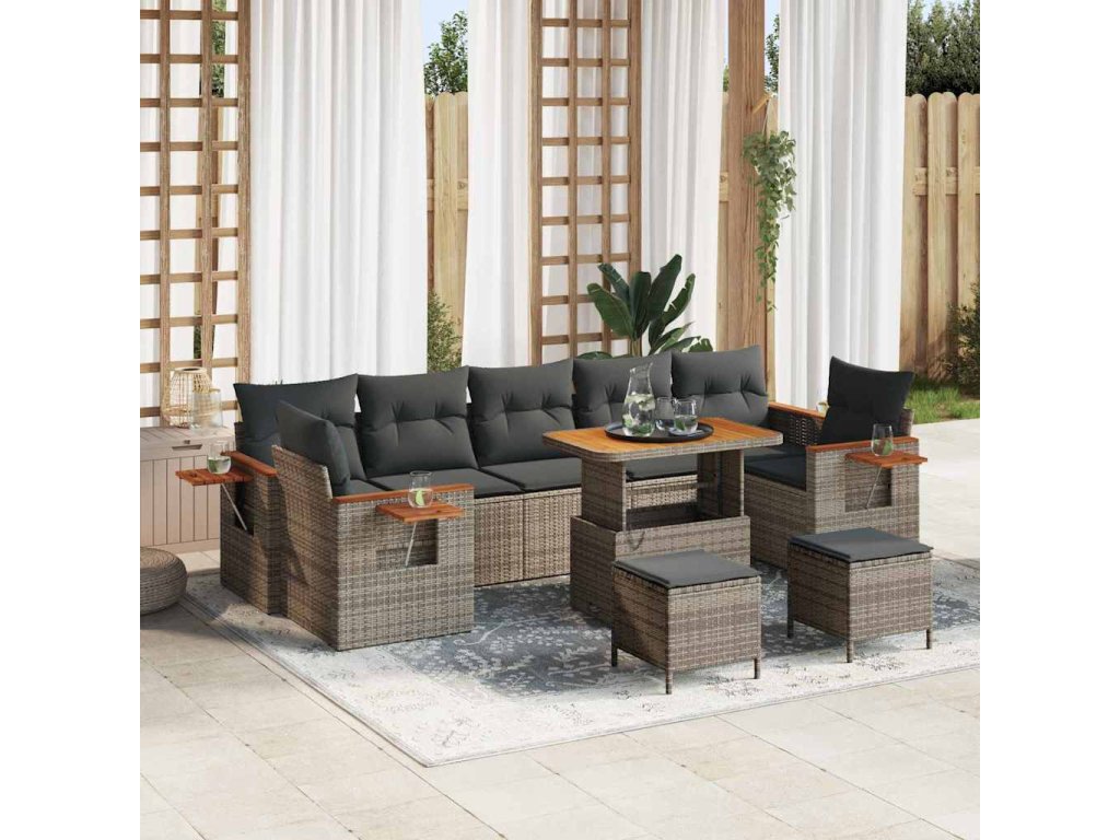 Sada zahradních pohovek s polštářem 10 pcs Šedá 3363163