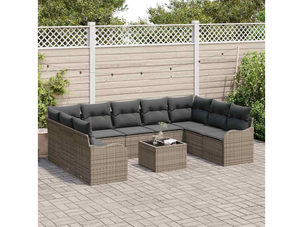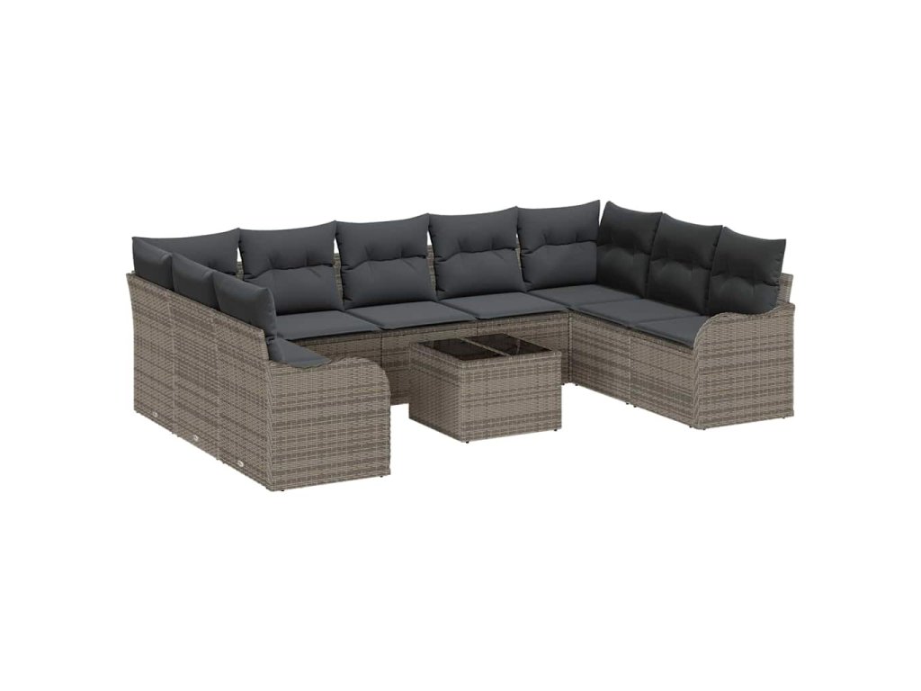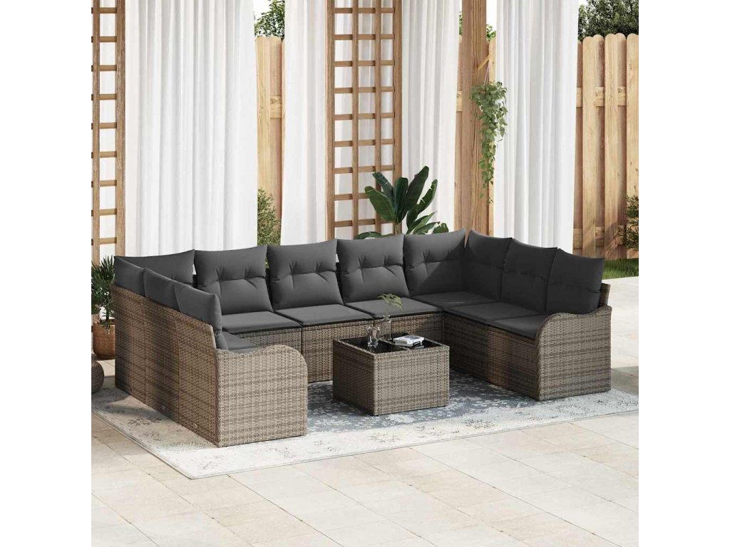 Sada zahradních pohovek s polštářem 10 pcs Šedá Poly ratan 3354538