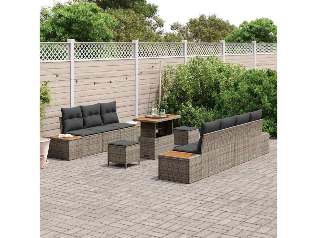 Sada zahradních pohovek s polštářem 10 pcs Šedá Poly ratan 3362883