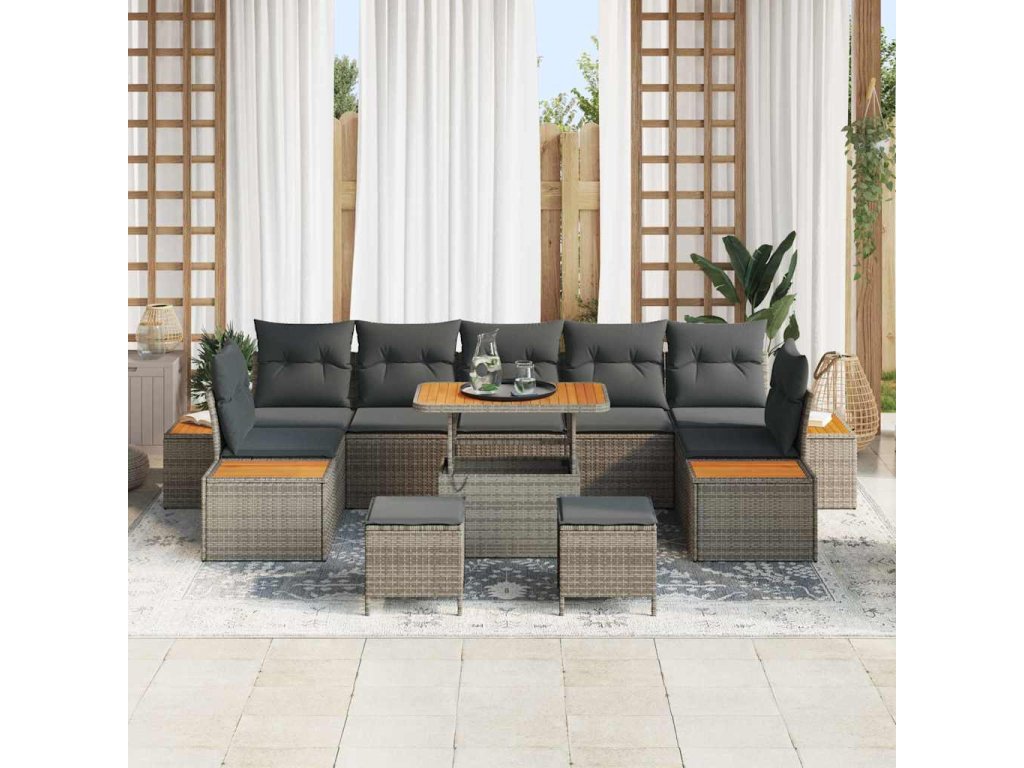 Sada zahradních pohovek s polštářem 10 pcs Šedá Poly ratan 3364853