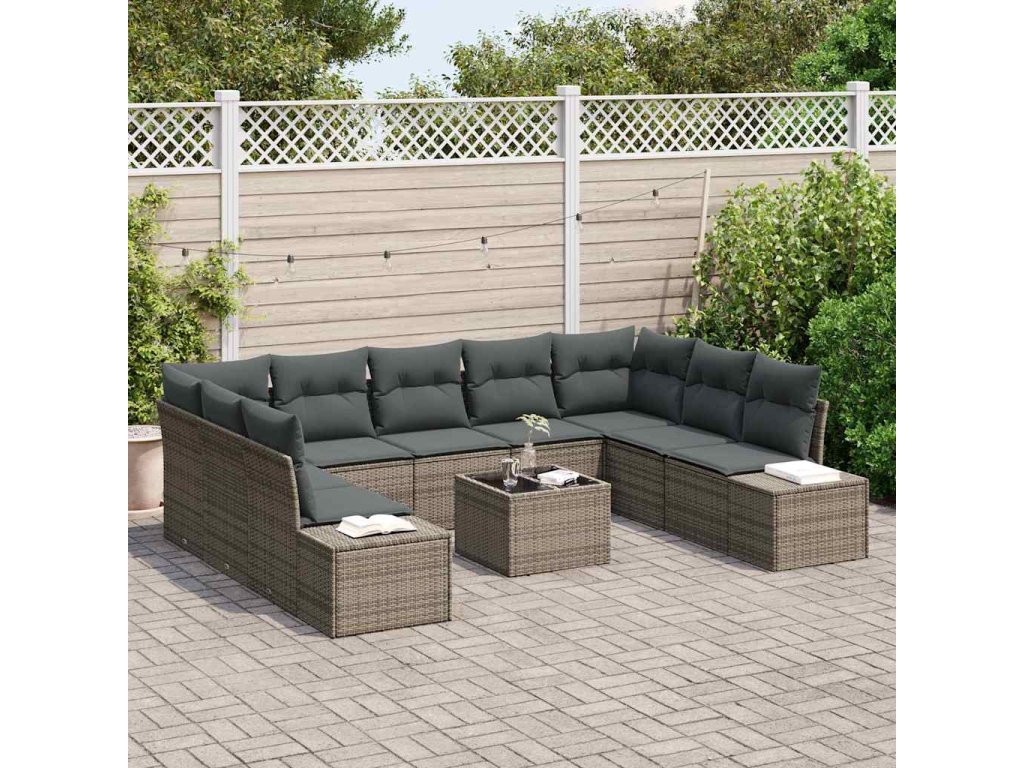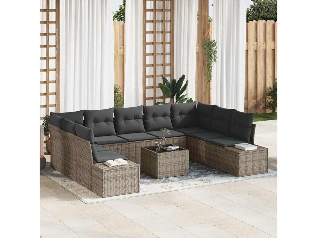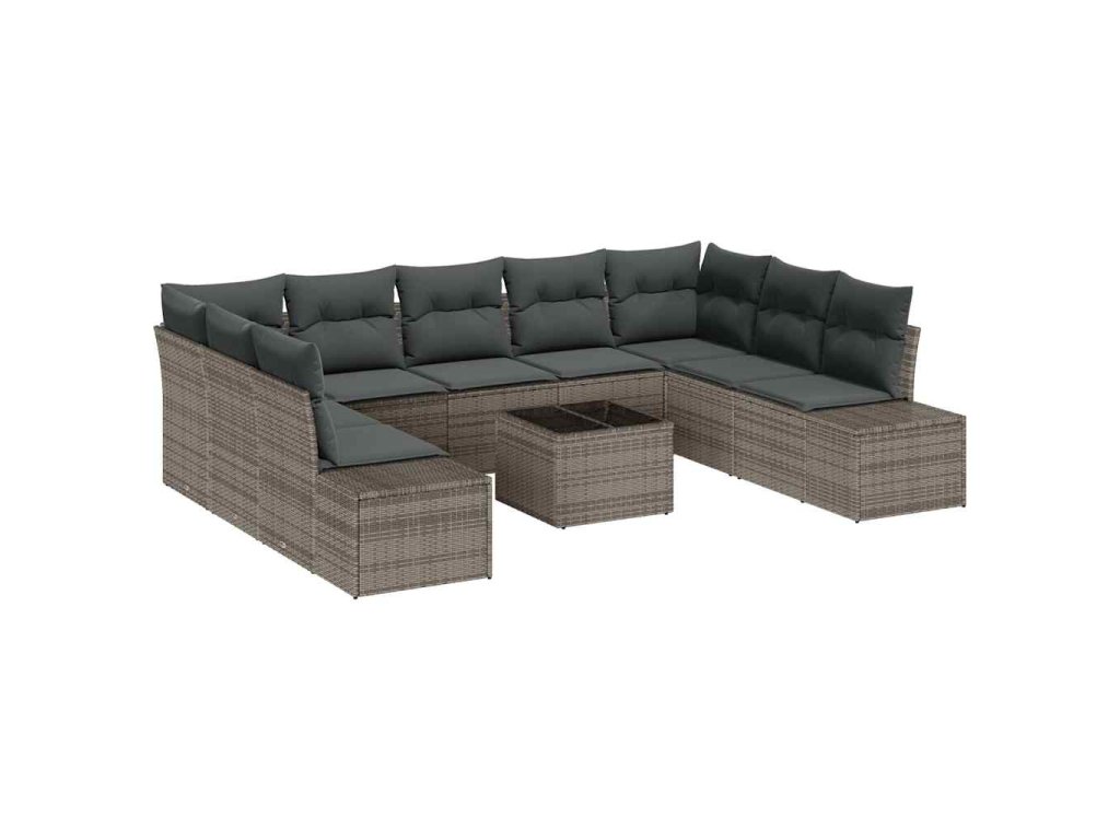 Sada zahradních pohovek s polštářem 10 pcs Šedá polyratan 3347229