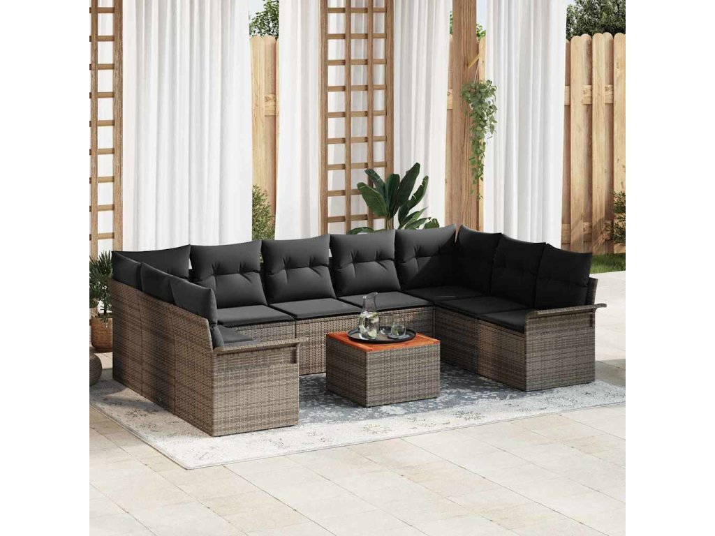 Sada zahradních pohovek s polštářem 10 pcs Šedá polyratan 3347370
