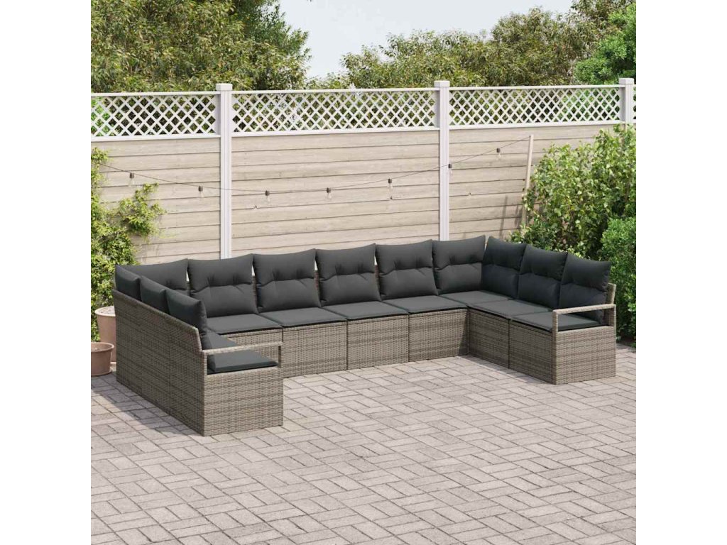 Sada zahradních pohovek s polštářem 10 pcs Šedá polyratan 3355228
