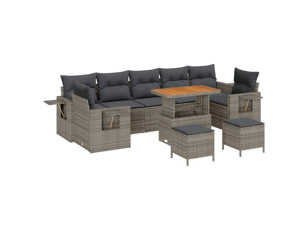 Sada zahradních pohovek s polštářem 10 pcs Šedá polyratan 3361733
